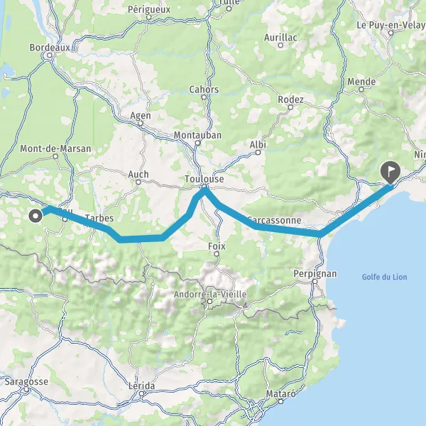 Prendre à droite et rejoindre A64. Continuer sur 201 kilomètres