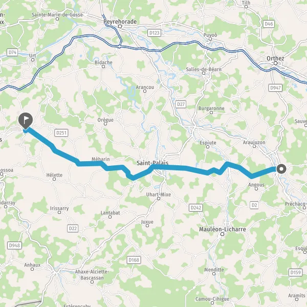 Au rond-point, prendre la 1ère sortie sur D11 (Route de Saint-Palais) et continuer sur 8,9 kilomètres