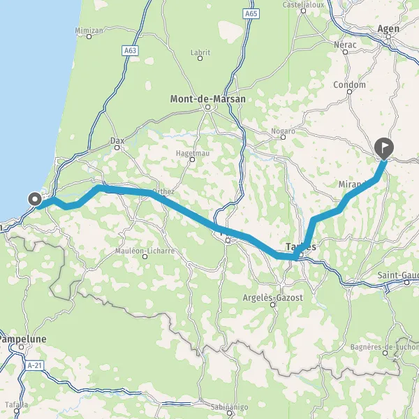 Tourner légèrement à droite sur N21 (Route d'Auch) et continuer sur 18 kilomètres