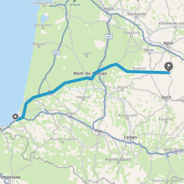 Prendre à droite et rejoindre D824 (Route de Bayonne). Continuer sur 39 kilomètres