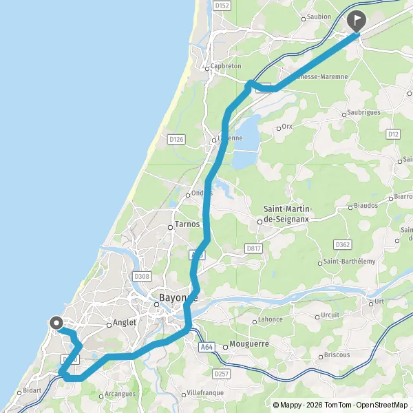 A63A64Saint-Jean-de-LuzSaint-SébastienBayonneBordeaux
