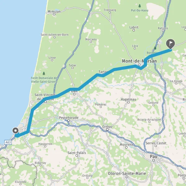 Prendre à droite et rejoindre D824 (Route de Bayonne). Continuer sur 39 kilomètres