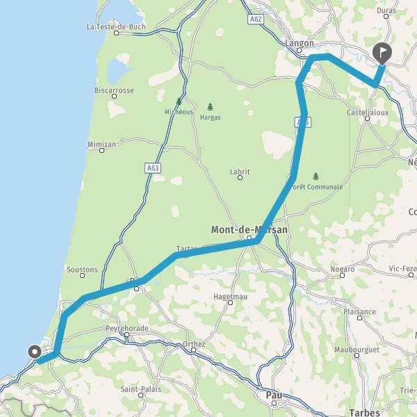 Prendre à droite et rejoindre D824 (Route de Bayonne). Continuer sur 39 kilomètres