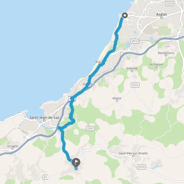 Au rond-point, prendre la 1ère sortie sur D918 (Route de Saint-Jean-de-Luz) et continuer sur 850 mètres