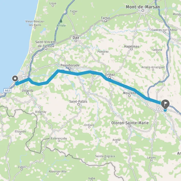 Prendre à droite et rejoindre A63. Continuer sur 230 mètres