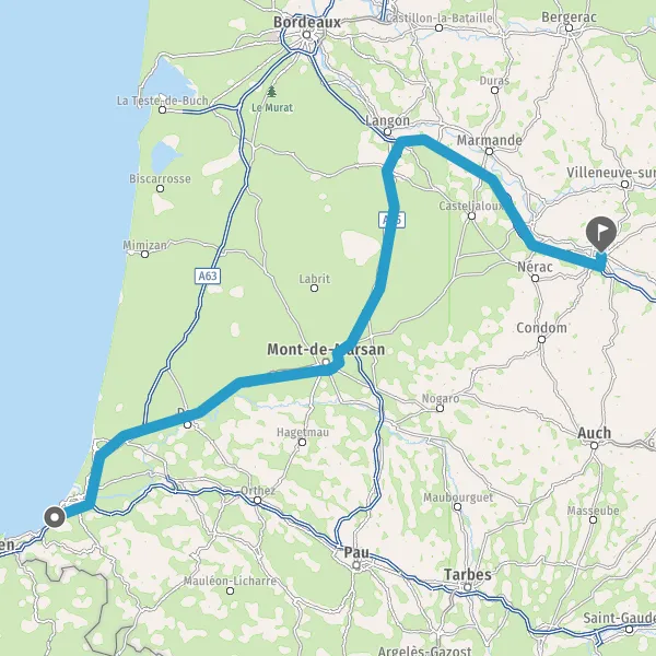 Prendre à droite et rejoindre D824 (Route de Bayonne). Continuer sur 39 kilomètres