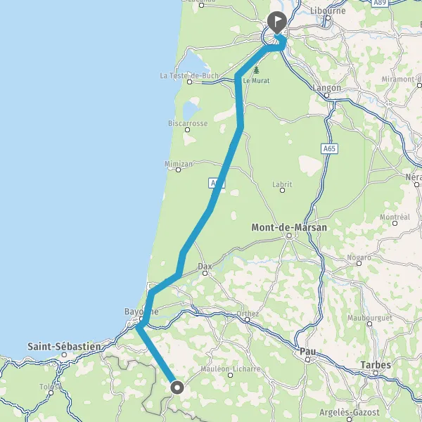 Prendre à droite et rejoindre A63 E5 E70 E80. Continuer sur 178 kilomètres