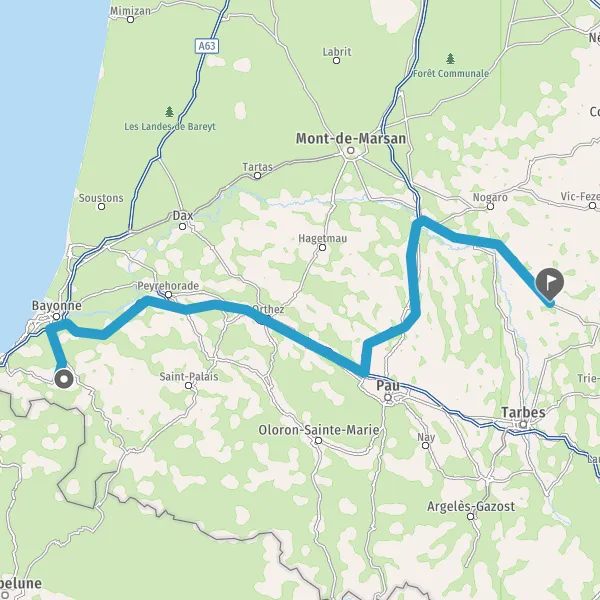 Prendre à droite et rejoindre A64 E80. Continuer sur 94 kilomètres