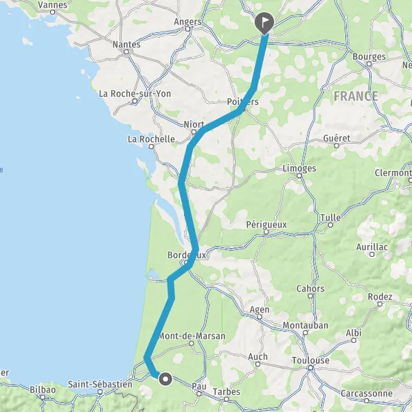 Prendre à droite et rejoindre A63 E5 E70. Continuer sur 139 kilomètres