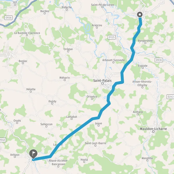Tourner à gauche sur D933 (Chemin de Bidegorria) et continuer sur 12 kilomètres
