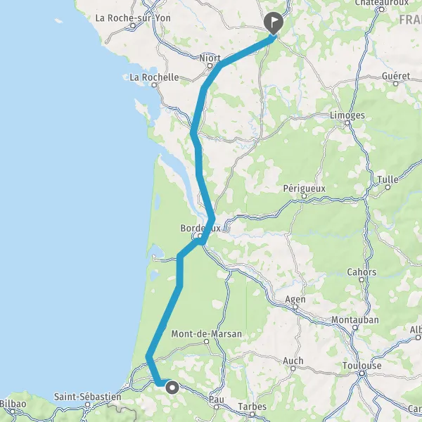 Prendre à droite et rejoindre A63 E5 E70. Continuer sur 139 kilomètres