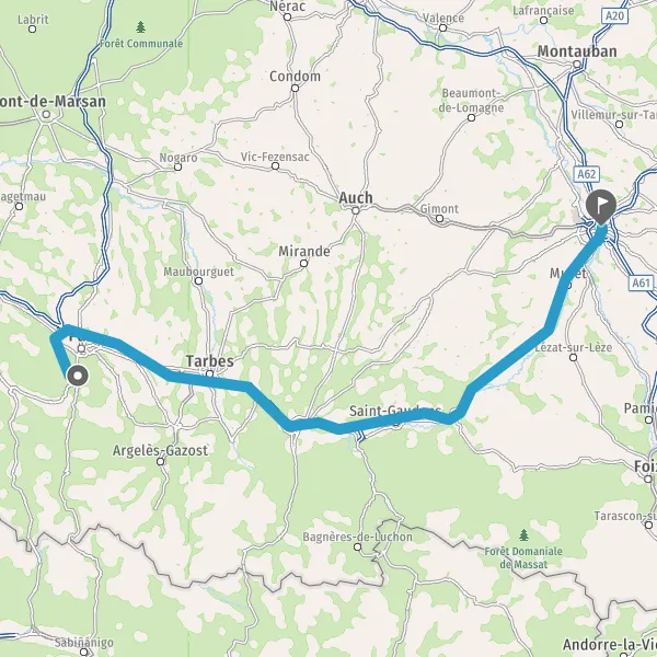 Prendre à droite et rejoindre A64 E80. Continuer sur 169 kilomètres