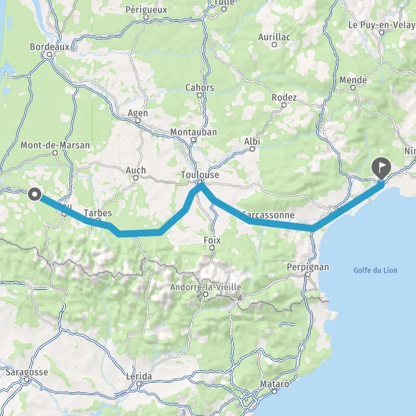 Prendre à droite et rejoindre A64 E80. Continuer sur 220 kilomètres