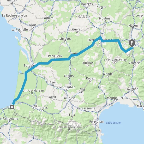 Prendre à droite et rejoindre A63 E5 E70 E80. Continuer sur 178 kilomètres