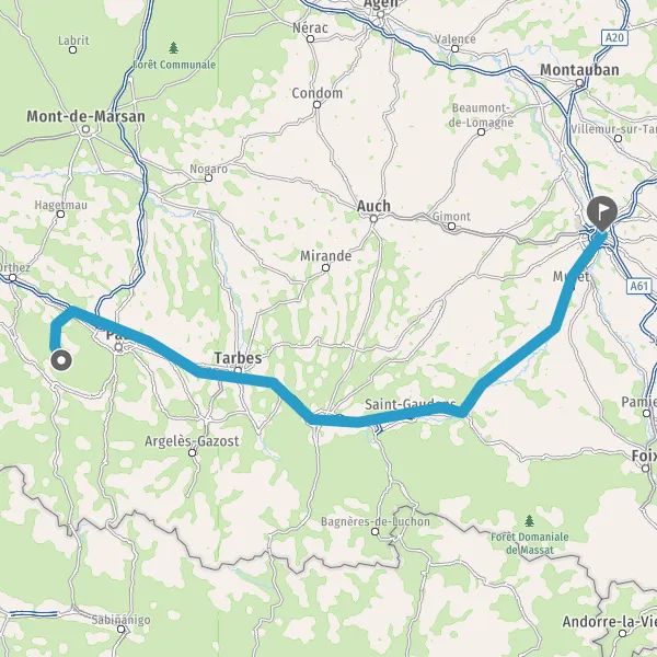 Prendre à droite et rejoindre A64. Continuer sur 189 kilomètres