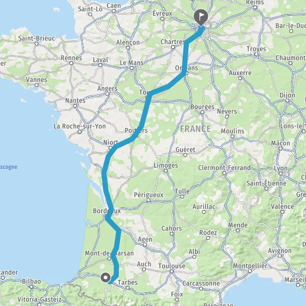 Prendre à droite et rejoindre A65 E7. Continuer sur 150 kilomètres