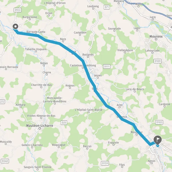Au rond-point, prendre la 2ème sortie sur D936 (Route d'Oloron) et continuer sur 8,7 kilomètres