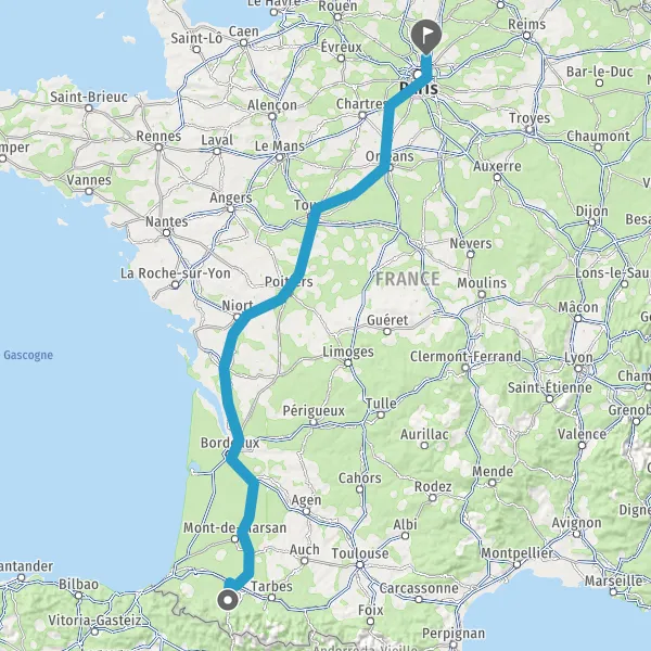 Prendre à droite et rejoindre A65 E7. Continuer sur 150 kilomètres