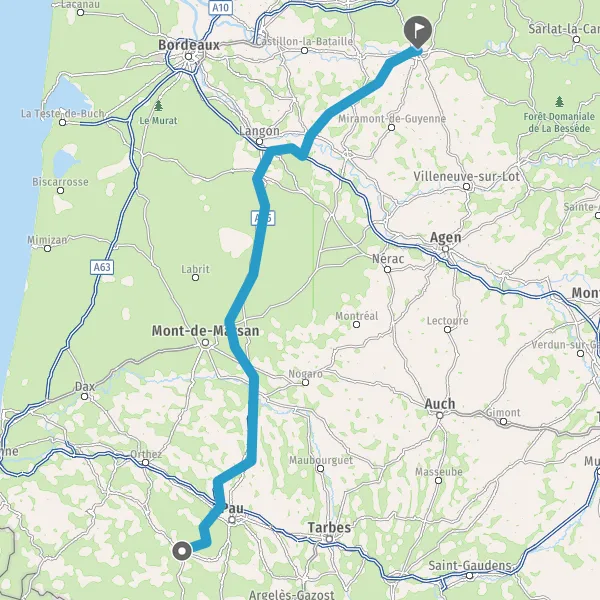 Prendre à droite et rejoindre A65. Continuer sur 150 kilomètres