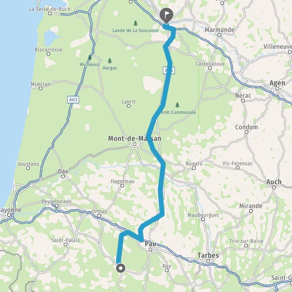 Prendre à droite et rejoindre A65. Continuer sur 150 kilomètres