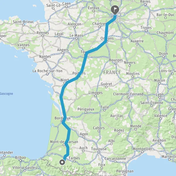 Prendre à droite et rejoindre A65. Continuer sur 150 kilomètres
