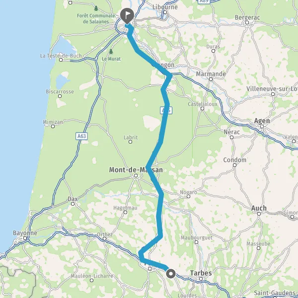Avec le mode voiture, vous pouvez configurer vos options (type de véhicule, autoroute ou non, péage ou non, distance la plus courte), tout en ayant accès aux infos de circulation grâce à notre service d'info-trafic en temps réel. Ainsi faites des économies sur le coût ou la durée de votre voyage, en trouvant le trajet Soumoulou Bordeaux adapté à vos besoins.