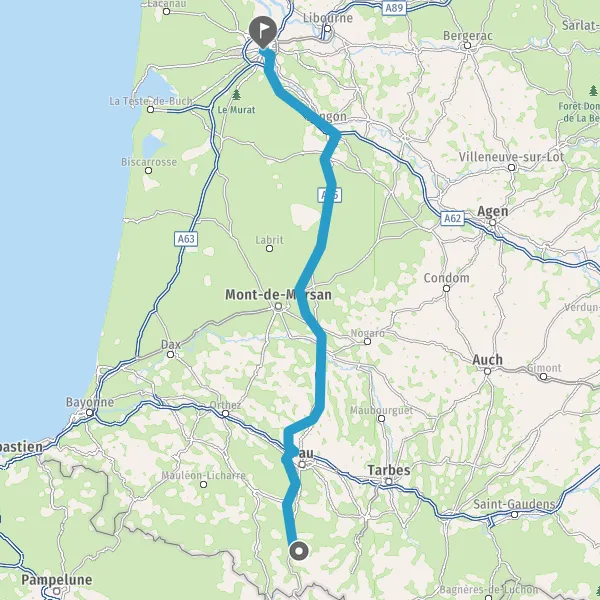 Prendre à droite et rejoindre A65. Continuer sur 150 kilomètres
