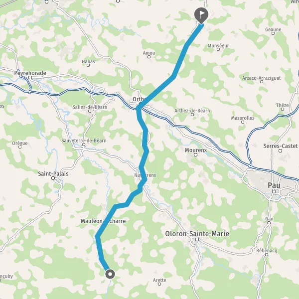 Au rond-point, prendre la 2ème sortie sur D933 (Route d'Orthez) et continuer sur 2,5 kilomètres