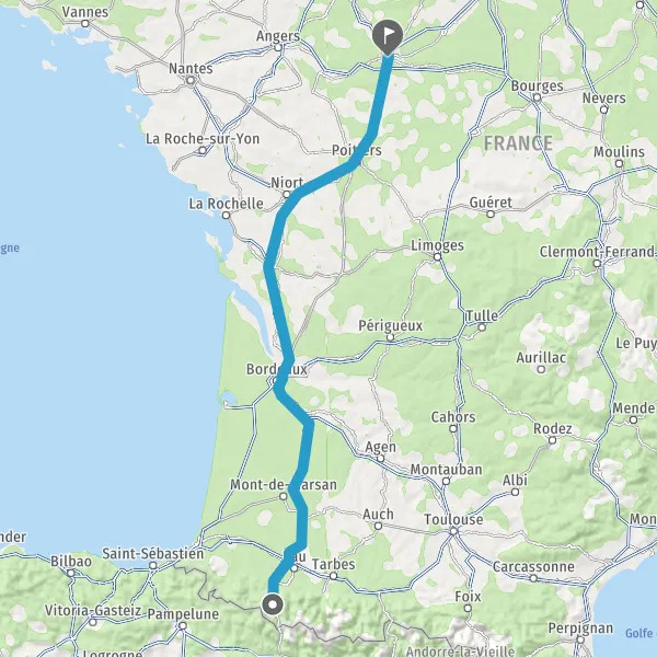 Prendre à droite et rejoindre A65. Continuer sur 150 kilomètres