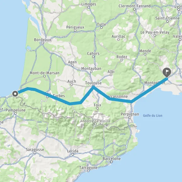 Prendre à droite et rejoindre A64 E80. Continuer sur 286 kilomètres