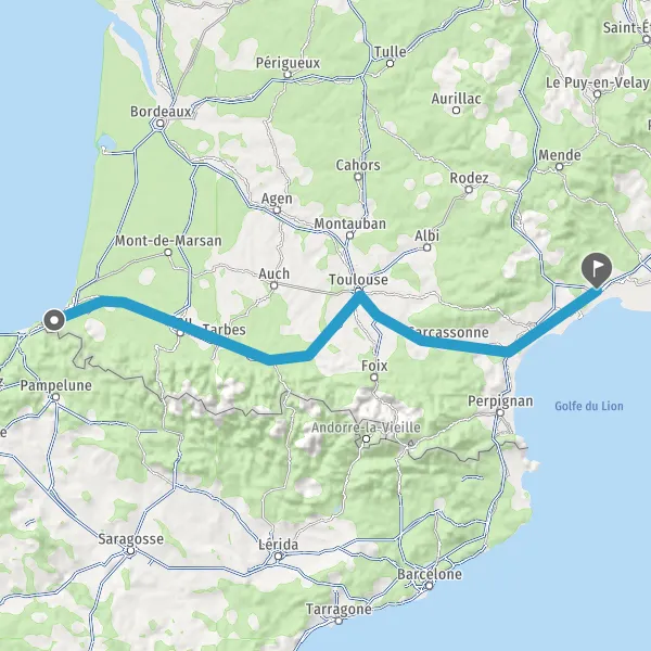 Prendre à droite et rejoindre A64 E80. Continuer sur 286 kilomètres