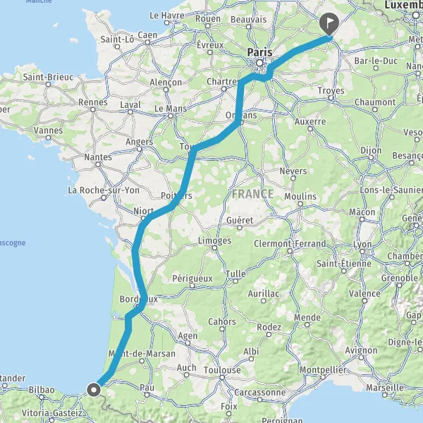 Continuer E5 (L'Aquitaine) sur 427 kilomètres