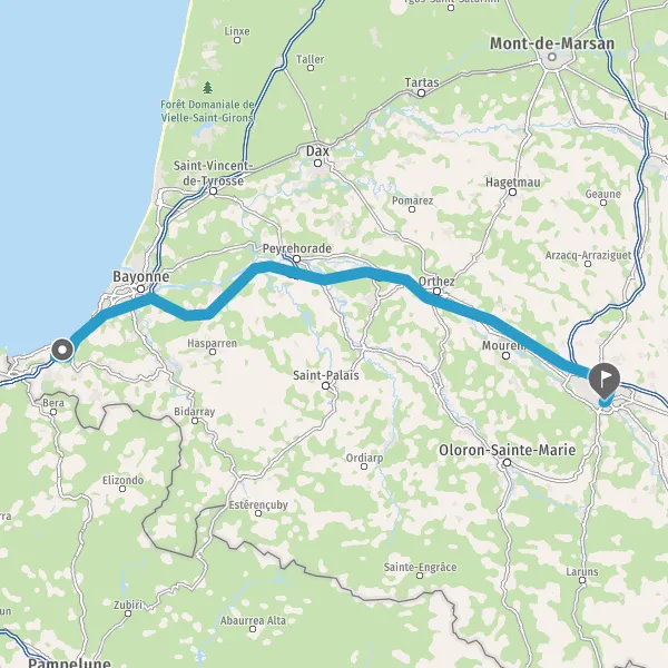Prendre à droite et rejoindre A64 E80. Continuer sur 103 kilomètres