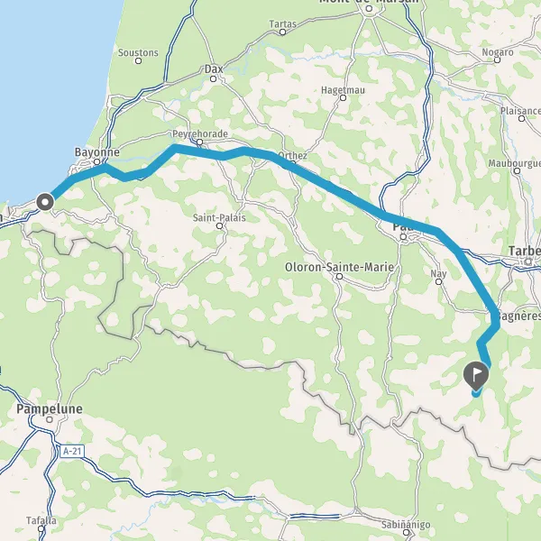 Prendre à droite et rejoindre A64 E80. Continuer sur 101 kilomètres