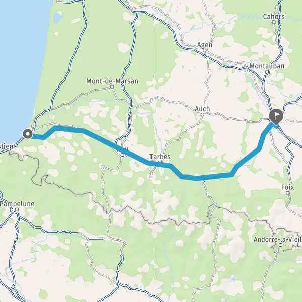 Prendre à droite et rejoindre A64 E80. Continuer sur 286 kilomètres