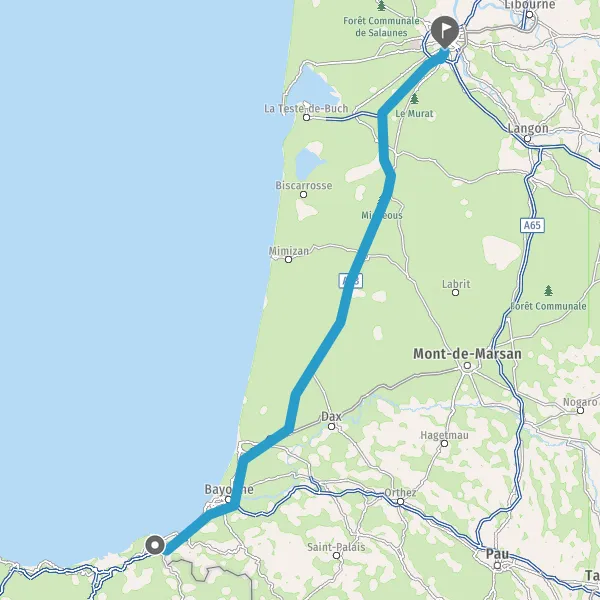 Payer 2,00 € (Péage Biriatou) Autoroute de la Côte Basque Payer 2,80 € (Péage La Negresse) Payer 4,30 € (Péage Benesse) Payer 4,40 € (Péage Castets) Payer 4,40 € (Péage Saugnacq-et-Muret) 3,7 km