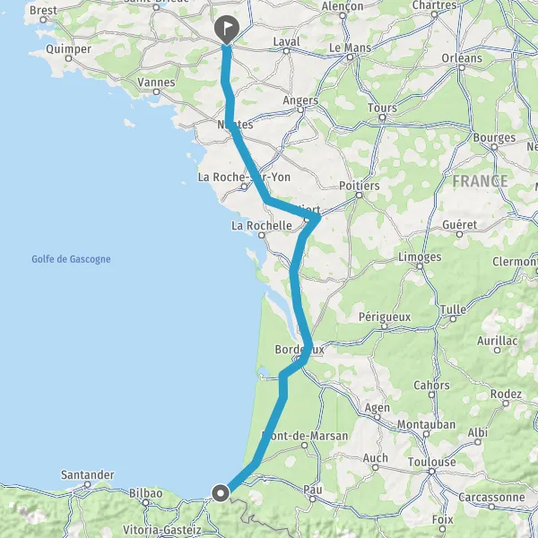 Prendre à droite et rejoindre A83. Continuer sur 150 kilomètres