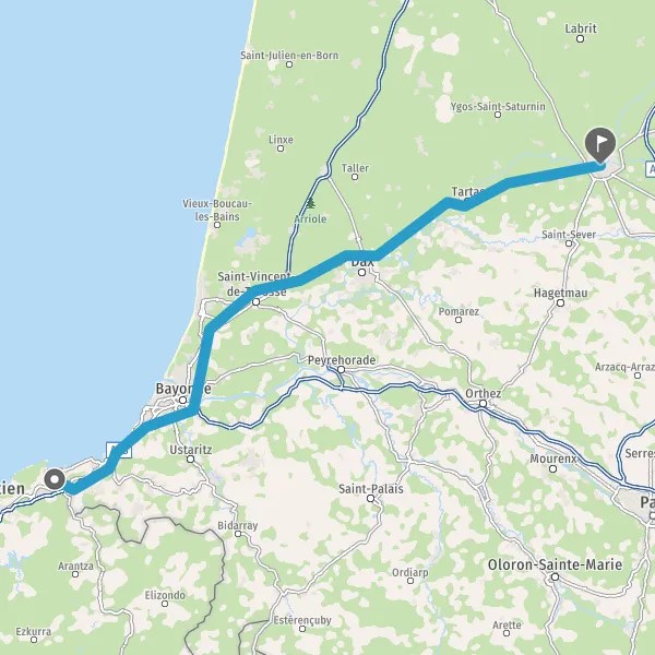 Prendre à droite et rejoindre D824 (Route de Bayonne). Continuer sur 39 kilomètres