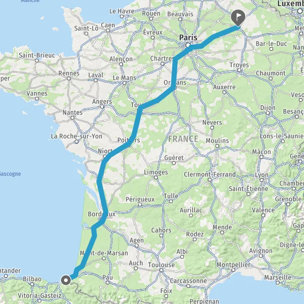 Continuer E5 (L'Aquitaine) sur 427 kilomètres