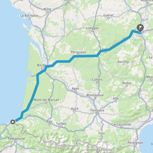 Prendre à droite et rejoindre A63 E5 E70 E80. Continuer sur 204 kilomètres