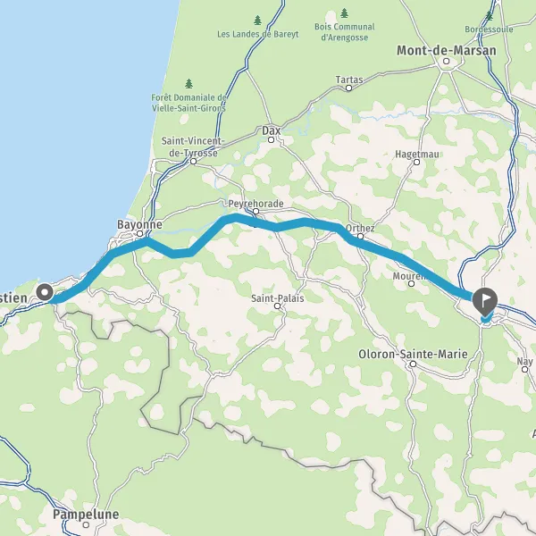 Prendre à droite et rejoindre A64 E80. Continuer sur 103 kilomètres