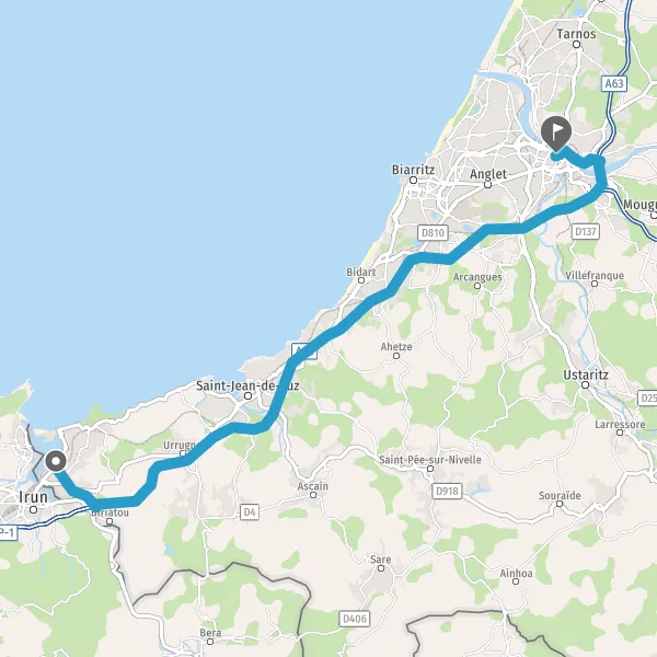Au rond-point, prendre la 2ème sortie sur D811 (Route de Behobie) et continuer sur 700 mètres