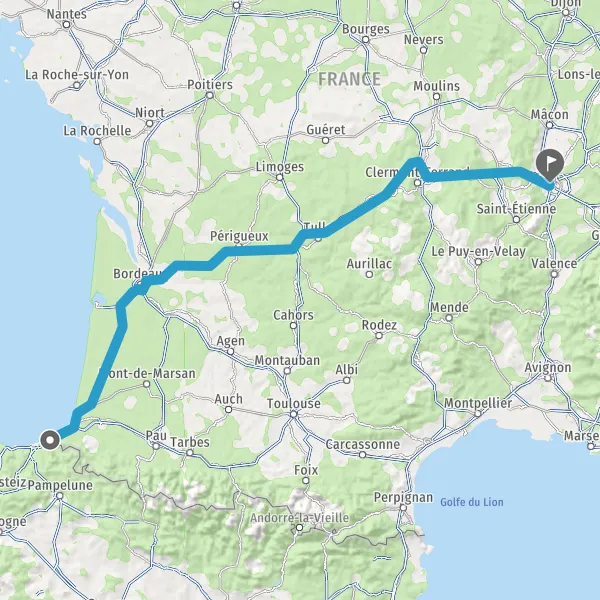 Prendre à droite et rejoindre A63 E5 E70 E80. Continuer sur 204 kilomètres