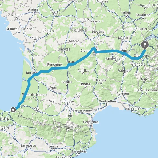 Prendre à droite et rejoindre A63 E5 E70 E80. Continuer sur 204 kilomètres