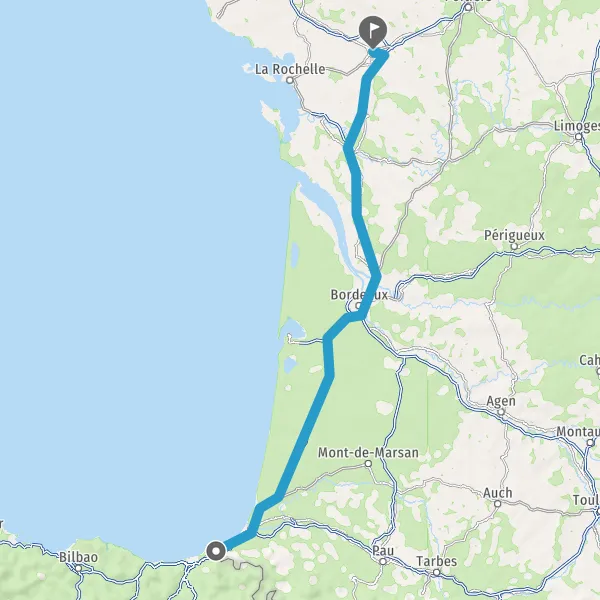 Prendre à droite et rejoindre A63 E5 E70 E80. Continuer sur 204 kilomètres