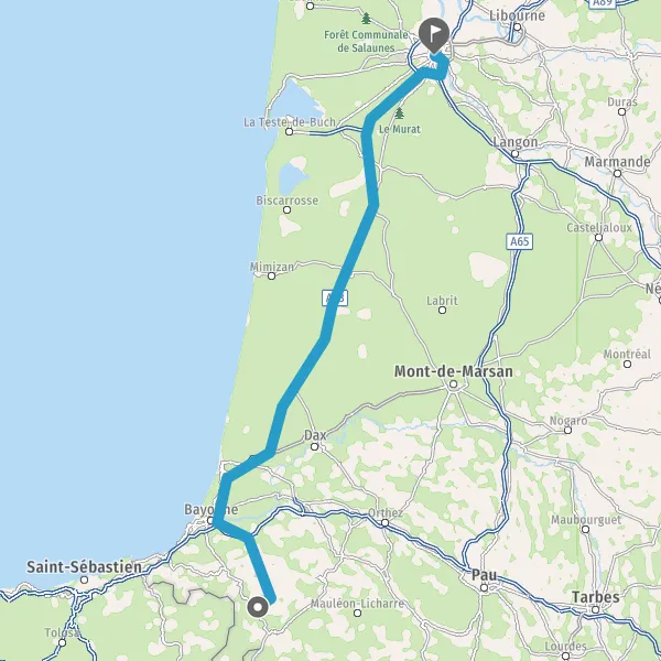 Prendre à droite et rejoindre A63 E5 E70 E80. Continuer sur 178 kilomètres