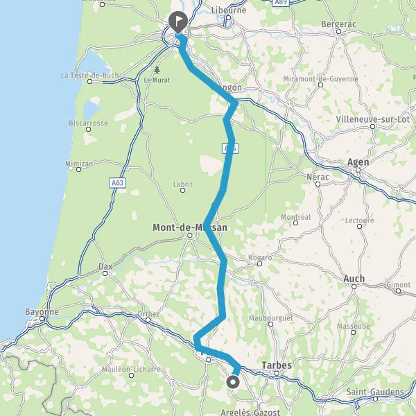 Prendre à droite et rejoindre A65. Continuer sur 150 kilomètres