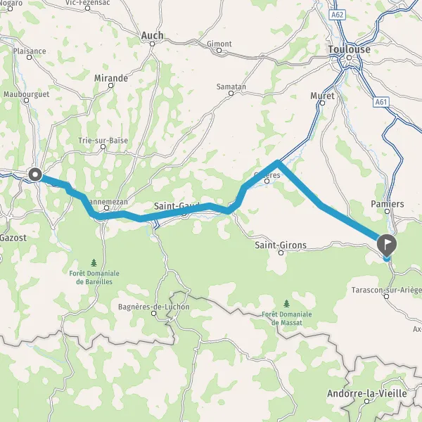Prendre à droite et rejoindre A64. Continuer sur 100 kilomètres