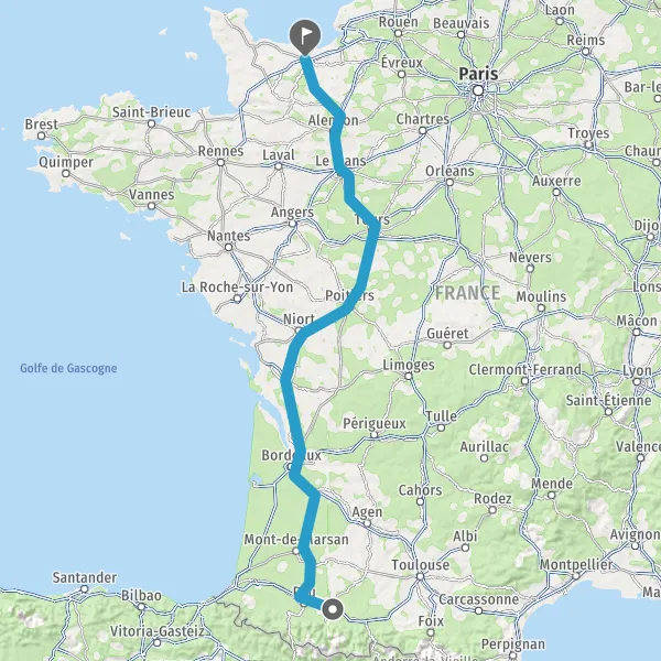 Prendre à droite et rejoindre A65. Continuer sur 150 kilomètres