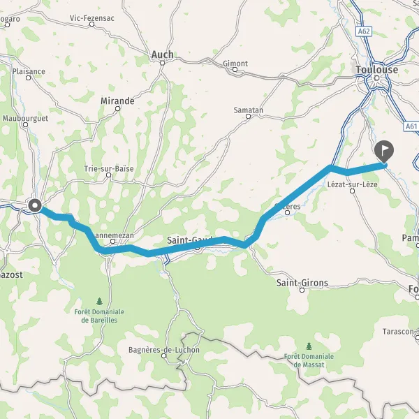 Prendre à droite et rejoindre A64. Continuer sur 112 kilomètres